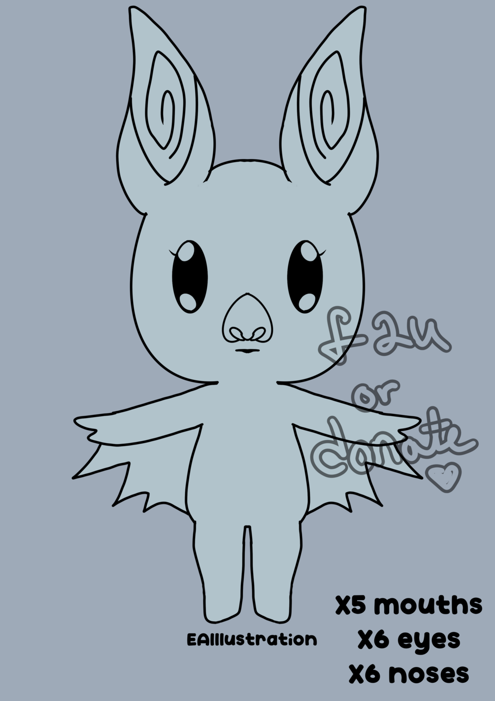 A cute little bat base I made in the style of Animal Crossing villagers (unofficial). Pay what you like; thank you for your support!